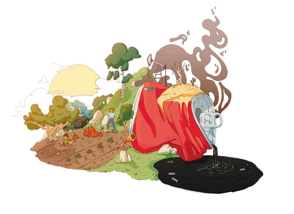 • Sistemas alimentarios dominados por grandes corporaciones que desplazan la agricultura campesina, familiar, étnica, comunitaria, agroecológica y biodiversa.